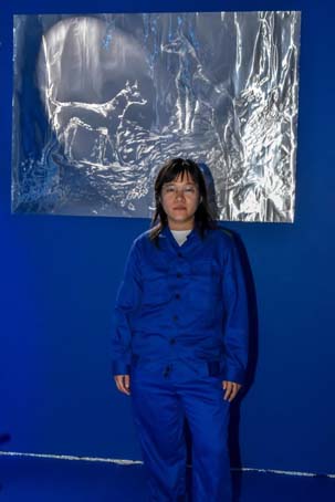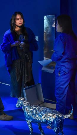 Với tham vọng quảng bá rộng rãi nghệ thuật đương đại của Việt Nam, Lê Thiên Bảo đã không ngần ngại cho sơn toàn màu xanh dương từ thảm trải nền nhà đến tường của Galerie BAO để đón tiếp cuộc triển lãm và trình diễn của nghệ sĩ Hằng Hằng, mang tên “La Raison est un Chien. La Raison est une Fleur” (Lý Do Là Một Con Chó. Lý Do Là Một Bông Hoa), từ ngày 12/09 đến 4/10/25. Hằng Hằng xuất thân từ Trường Cao đẳng Quốc gia Nghệ thuật Trang trí ở Paris. Trong bộ trang phục công nhân để trình diễn cùng với hai nghệ sĩ khác, Hằng Hằng cho biết vì sao cô đã chuyển từ ngành kiến trúc sang ngành nghệ thuật: