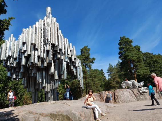 Đài tưởng niệm Sibelius trong công viên cây cỏ xanh tươi ở quận Töölö thuộc Helsinki tưởng nhớ Jean Sibelius (1865 - 1957) nhà soạn nhạc lỗi lạc, có những đóng góp to lớn vào nền âm nhạc của thế giới. Tác phẩm nghệ thuật gồm 600 ống đàn bằng thép, được kết nối vào nhau. Nhìn từ xa, giống như cây đàn organ lơ lửng giữa không gian. Vào ngày đầy gió, những làn gió chuyển động len lỏi qua những ống đàn sẽ tạo nên tiếng nhạc tưởng như giai điệu của gió. (Tôi chợt nhớ đến giai thoại về Sibelius nhà văn Trịnh Y Thư kể trong tạp bút Chỉ Là Đồ Chơi. Nhạc sĩ Sibelius, như nhiều văn nghệ sĩ khác, rất thích ngồi quán. Một hôm, đã khá trễ, ông vẫn tụm năm, tụm ba với bạn bè trong quán. Vợ ông gọi, hỏi kháy: “Ông biết bây giờ mấy giờ không?” Ông cao giọng: “Tôi là nhà soạn nhạc. Làm sao biết bây giờ là mấy giờ.”)