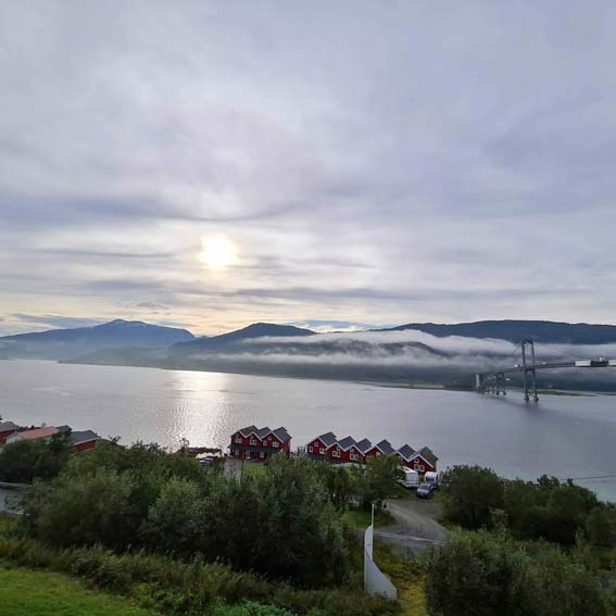 Ngắm Mũi Bắc Nordkapp vào giữa đêm, sáng sớm hôm sau chúng tôi dừng chân ở Alta, thành phố lớn nhất phía bắc Na Uy nằm trên Altafjord. Bắc Cực Quang xuất hiện thường xuyên ở nơi này. Nhà thờ Northern Lights, nhà thờ lớn nhất ở thành phố Alta, được xây dựng từ năm 2011 đến năm 2013, hoàn toàn bằng bê tông với các tấm titan được ốp ở bên ngoài. Rải rác dọc đường có những giá cho xe đạp đậu với mái nhỏ để che mưa yên xe. Một sáng kiến ngộ nghĩnh mà thật hữu ích.