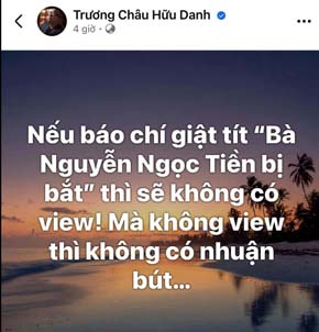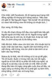 Ảnh chụp màn hình status của nhà báo Trương Châu Hữu Danh và Tiểu Vũ