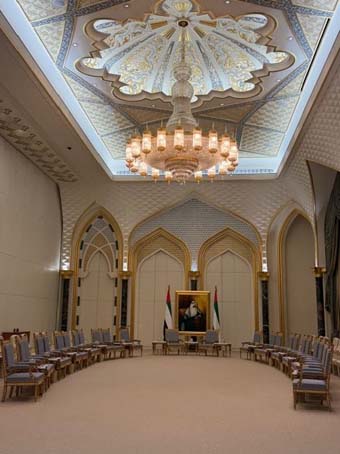 Rời Museum, chúng tôi đi thăm Qasr Al-Watan (Arabic có nghĩa là Palace of the Nation). Presidential Palace nầy được hoàn tất xây dựng năm 2017, là nơi Tổng thống làm việc, tiếp khách và hội họp, không phải chỗ ở. Đến năm 2019, Tổng thống Sheikh Khalifa bin Zayed Al Nahyan quyết định mở cửa cho du khách tham quan nhưng vẫn tiếp tục duy trì là nơi làm việc.