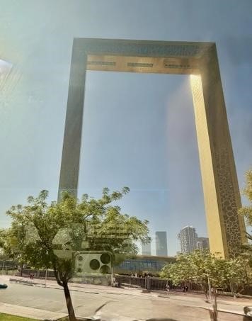 Dubai Frame cao 150m, ngang 93m, được xem là cửa ngõ giữa Old Dubai và New Dubai. Bước vào bên trong trước khi lên thang máy, bạn được tham quan một viện bảo tàng nho nhỏ về lịch sử của Dubai, từ một làng đánh cá khiêm nhường nay trở thành một thành phố tân kỳ bậc nhất. Sau đó thang máy sẽ đưa bạn lên 48 tầng chỉ trong 75 giây để tới Sky Deck. Từ đây bạn có thể thấy bao quát Old Dubai ở một bên và New Dubai ở bên kia. Đi trên nền bằng kiếng nhìn xuống bạn sẽ có cảm tưởng như đang bay lãng đãng trên thành phố Dubai.