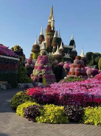 Điểm tham quan chót của chuyến du lịch là Miracle Garden. Dubai là xứ sa mạc, mùa hè nhiệt độ lên đến 130 độ F (54ºC) nên bông hoa chỉ có trong mấy tháng mùa đông, từ tháng 11 đến tháng 4 năm sau. Trong vườn có ít hoa giấy và hoa hướng dương, còn lại hầu hết là hoa petunia với đủ màu sắc rực rỡ. Thật khó tưởng tượng được rằng một khu vườn đẹp như cảnh tiên vậy mà chỉ trong vài tháng nữa thì sẽ không còn gì cả. Thế mới biết vô thường xảy ra mọi lúc mọi nơi.