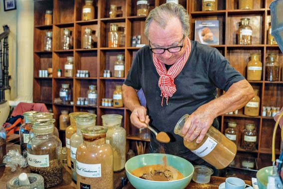 French-born chef Didion Corlou mixes spices in his restaurant, Madame Hien.