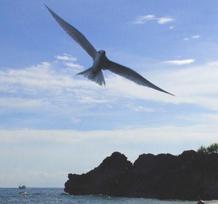 where the sea-dweller folds its wings,