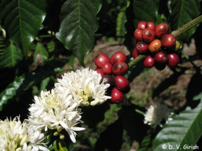 Cây cà phê, hoa và hột chưa chế biến