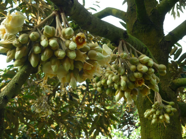 Hoa sầu riêng có chùm nhỏ rất thơm và có nhiều mật nên hấp dẫn ong và dơi đến hút mật hoa. Hoa sầu riêng thụ phấn nhờ dơi, ong và gió. Ngày nay sầu riêng được trồng ở các quốc gia trong vùng Đông Nam Á, các hải đảo Thái Bình Dương, đảo Hai Nan, Đài Loan, các đảo trong biển Caribbean, miền bắc Úc Đại Lợi, Congo, quần đảo Hawaii và cả Florida nữa. Ở Việt Nam ngoài Cái Mơn, Bình Nhâm, Nhị Bình các nơi khác như Long Thành, Long Khánh và Ban Mê Thuột cũng có trồng sầu riêng với kết quả tốt.