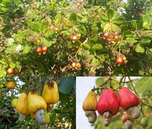 Cây điều, trái và hột điều (Ảnh: andifoods.com & pgdsonha.edu.vn)