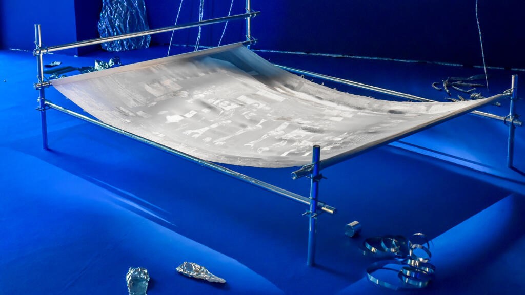 Với tham vọng quảng bá rộng rãi nghệ thuật đương đại của Việt Nam, Lê Thiên Bảo đã không ngần ngại cho sơn toàn màu xanh dương từ thảm trải nền nhà đến tường của Galerie BAO để đón tiếp cuộc triển lãm và trình diễn của nghệ sĩ Hằng Hằng, mang tên “La Raison est un Chien. La Raison est une Fleur” (Lý Do Là Một Con Chó. Lý Do Là Một Bông Hoa), từ ngày 12/09 đến 4/10/25. Hằng Hằng xuất thân từ Trường Cao đẳng Quốc gia Nghệ thuật Trang trí ở Paris. Trong bộ trang phục công nhân để trình diễn cùng với hai nghệ sĩ khác, Hằng Hằng cho biết vì sao cô đã chuyển từ ngành kiến trúc sang ngành nghệ thuật: