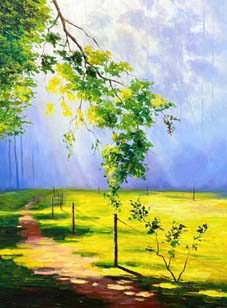 Tranh: Lê BìnhNắng xuân bỡn cợt cùng hoa